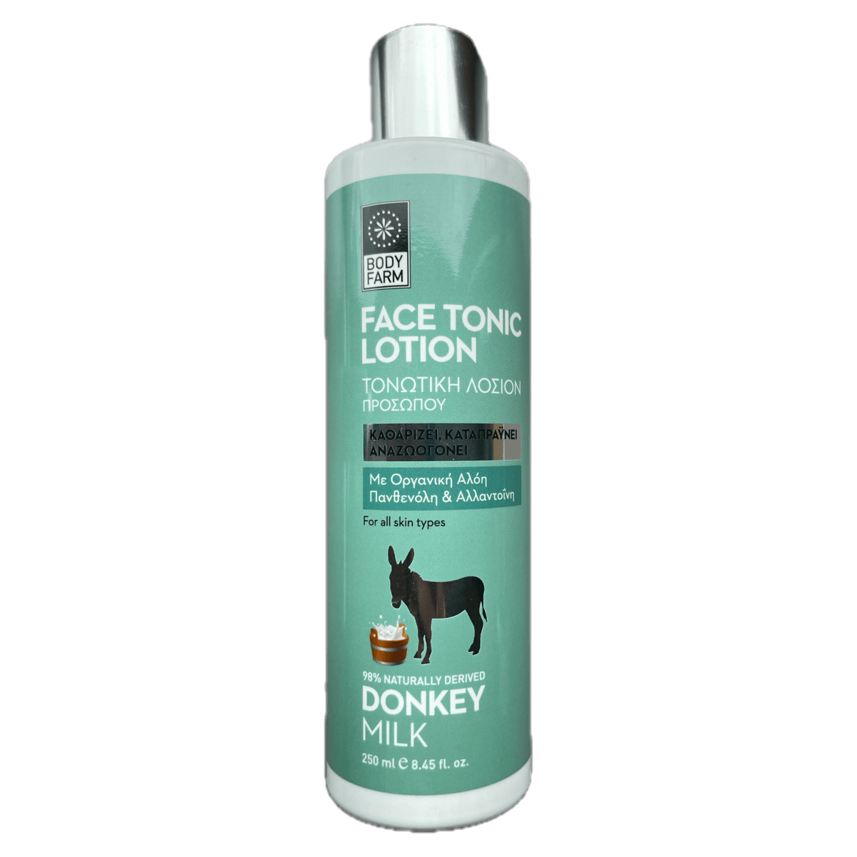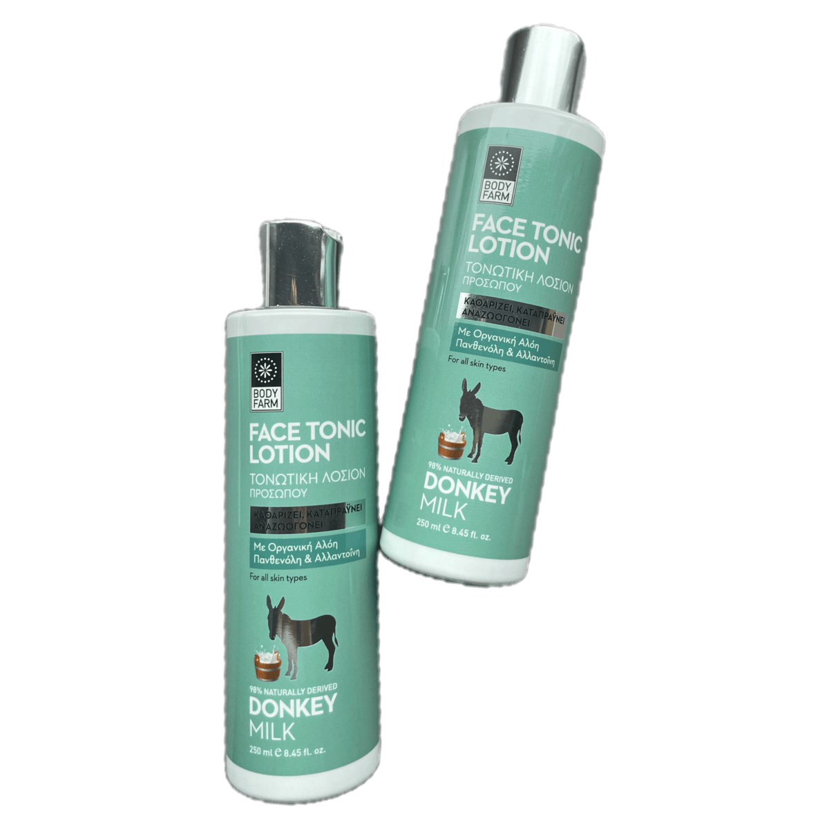 De gezichtstonic Donkey milk is een kalmerende lotion met ezelinnenmelk. De tonic reinigt de huid en geeft deze een gevoel van frisheid. De gezichtstonic verwijdert onzuiverheden en overtollig talg, waardoor de huid een natuurlijke matte finish krijgt. Bevat kalmerende allantoïne, hydraterende panthenol en biologische aloë vera. Deze gezichtstonic is ook geschikt voor de gevoelige of allergische huid.