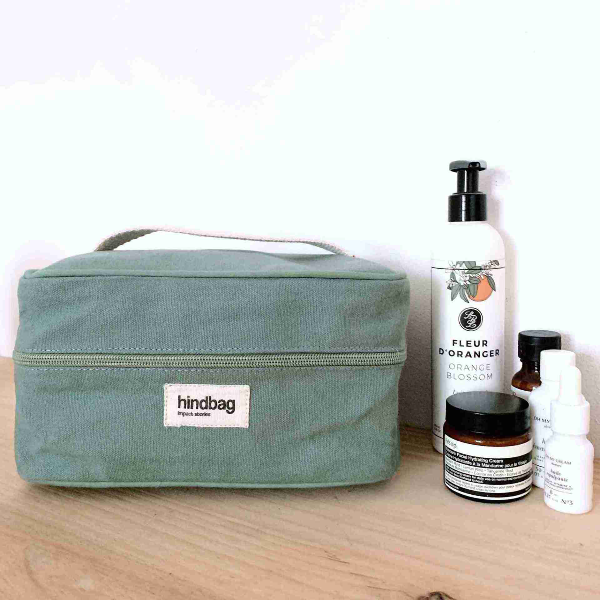 De Hindbag toilettassen zijn in Frankrijk ontworpen en vervaardigd door een Indiase NGO, SSMI, die zich inzet voor de emancipatie van vrouwen en de opvoeding van (kansarme) kinderen in India.