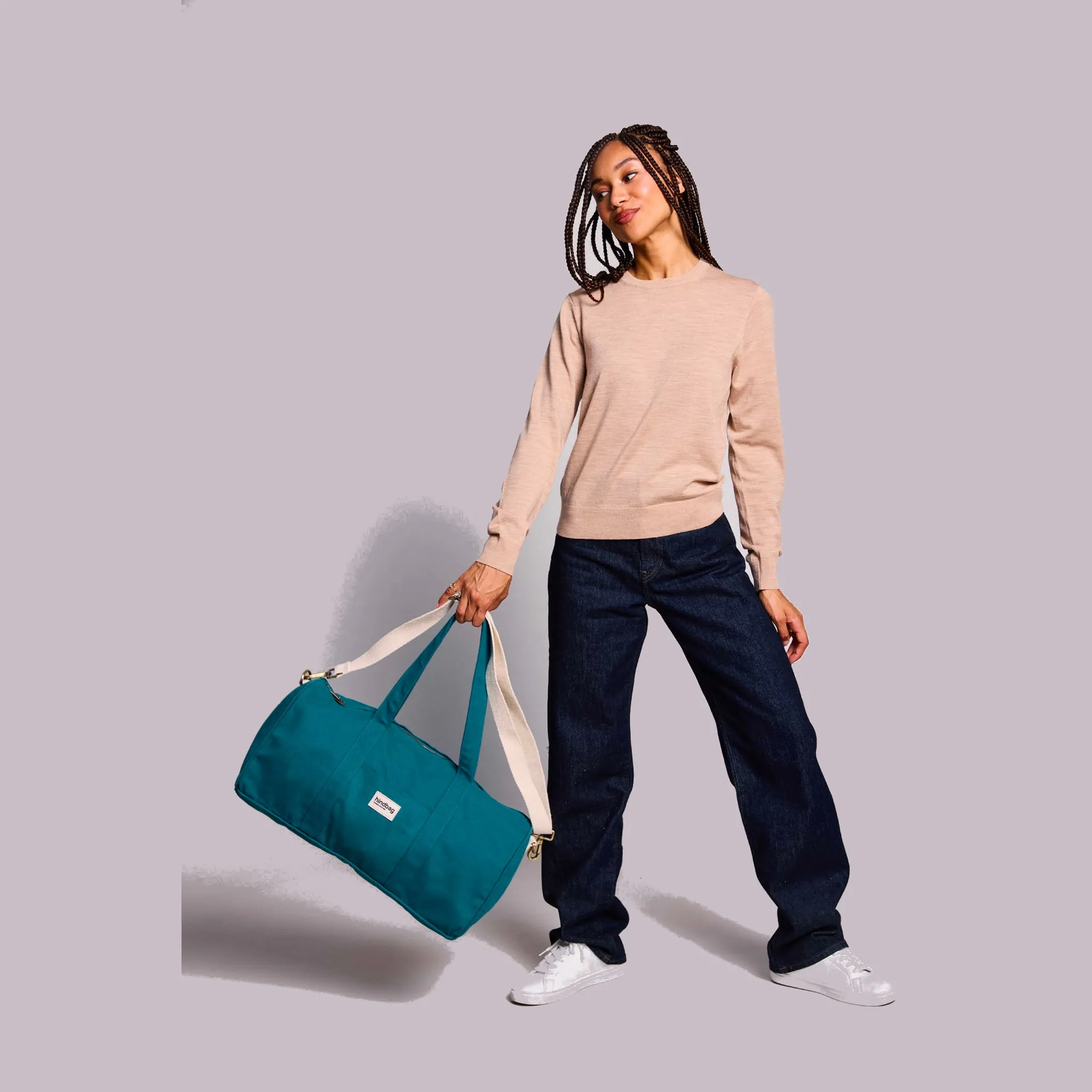De Hindbag weekendtas Simon in het opvallend blauw is de ideale metgezel voor jouw reisavonturen. Met een perfecte grootte van 25 x 48 x 25 cm en een capaciteit van 33 liter, is deze tas geschikt voor een weekendje of zelfs een hele week weg. Deze weekendtas heeft een handige binnenzak van 24 x 22 cm waar je bijvoorbeeld een toilettas in kunt opbergen. Deze blauwe weekendtas is handgemaakt van biologisch GOTS katoen.