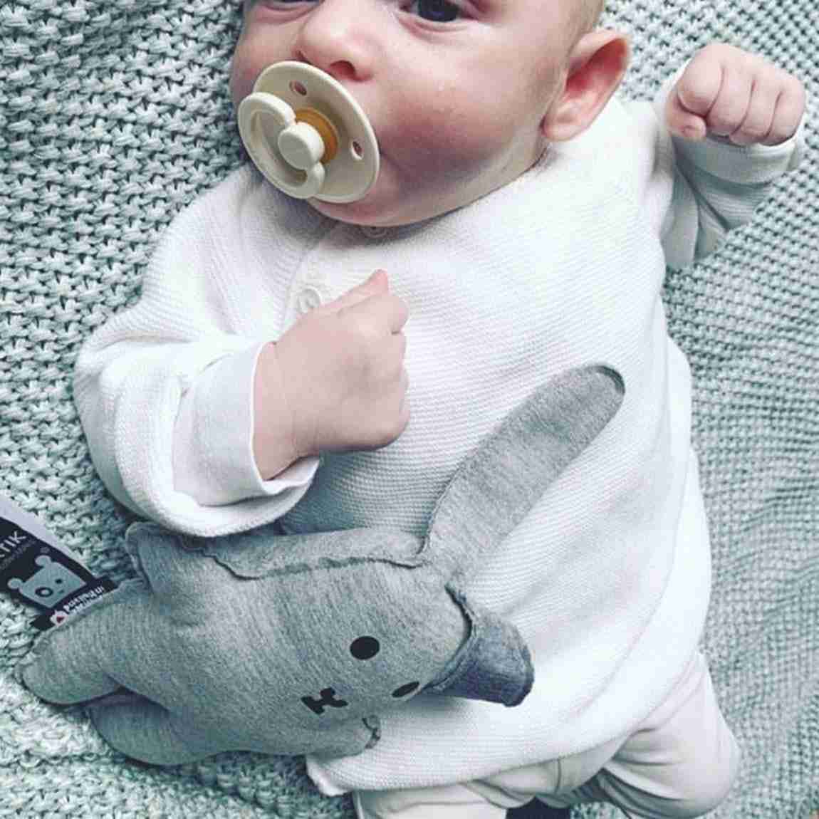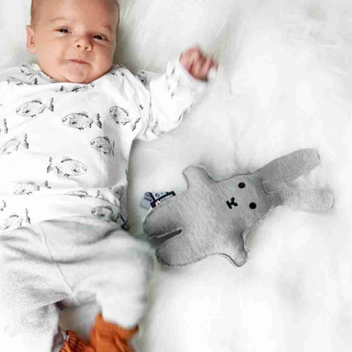 Met deze leuke, maar vooral zachte rammelaar Flap zal je kindje zich nooit meer alleen voelen. Flap “het konijn” maakt geluid wanneer hij bewogen wordt. Door de zacht klinkende bel zal jouw kindje ontspannen. Het katoen is 100 % Oekotex, wat betekend dat er geen schadelijke stoffen zijn gebruikt bij het maken van Flap. Om Flap ook schoon te houden, is het mogelijk om hem op 30 graden uit te wassen.